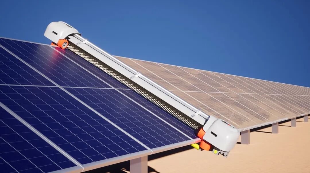 项目电站位于印度拉贾斯坦邦,土地多为荒漠戈壁,风沙侵袭频繁,光伏板易积累灰尘,思拓机器人能清除光伏板表面99.5%的尘埃污染,实现与电站跟踪支架动态配合,单台最长运行里程超3000米,能够有效提高电站发电效率、延长光伏组件使用寿命。